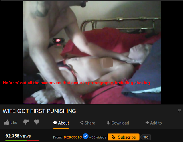 'Amateur' video posted by 'DrMisogyny' Male imitates the usual sexually aggressive acts that occur in pornography. Like most of the females in these videos, she is ordered around, manipulated into poses and appears to be emotionally detached.